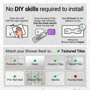 Shower Rack 3XL, Wall Mounting, Easy Glue Application Shower Caddies For XL Size Bottles, Single, Left